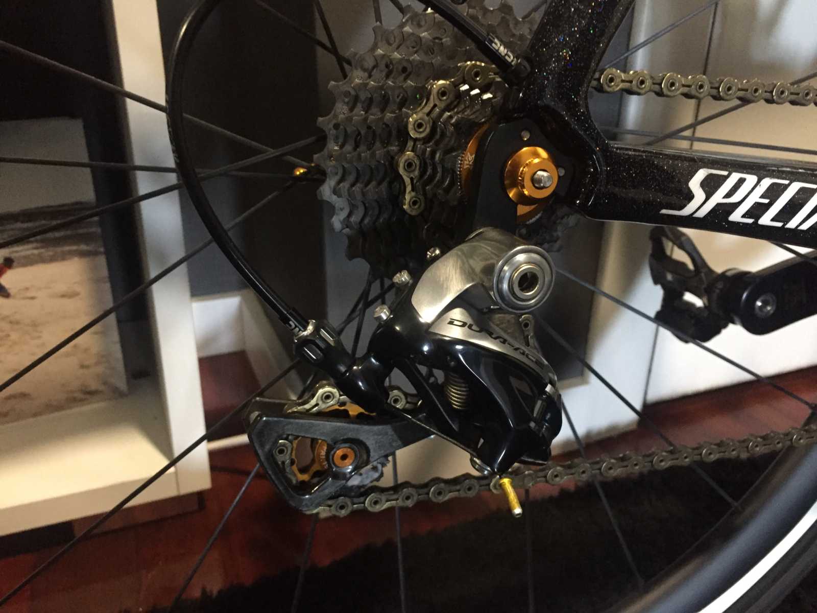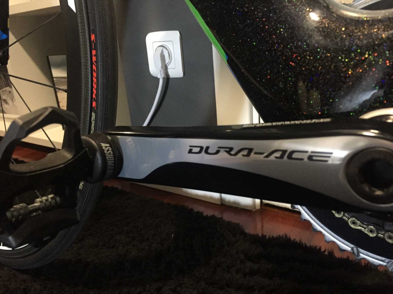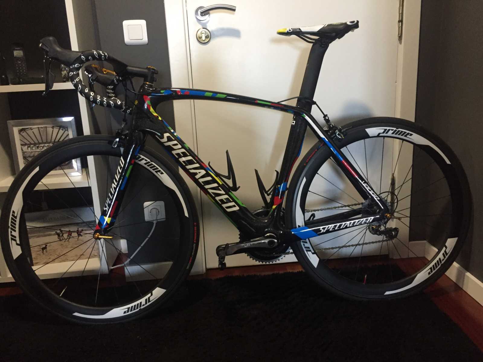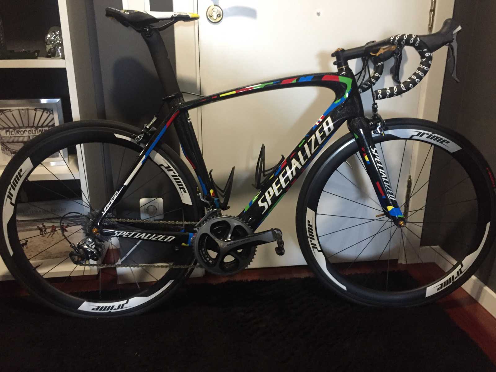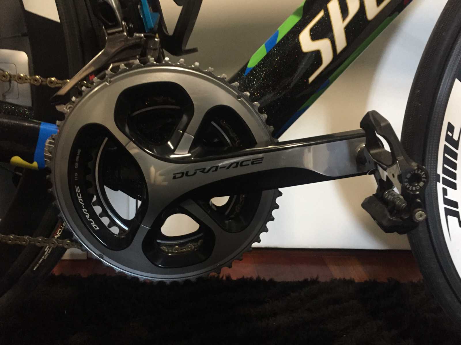 Montada entera en shimano dura ace, pedales con medidor de potencia (por separado), ruedas para cubierta de carbono prime .
