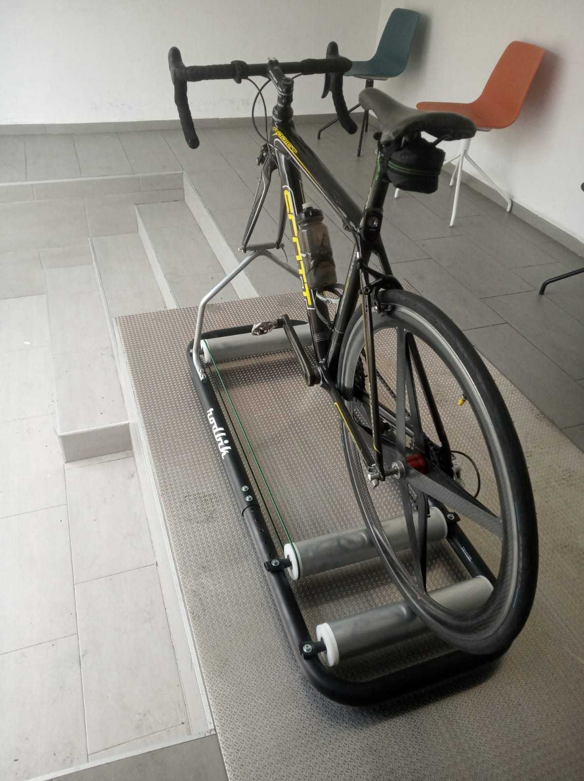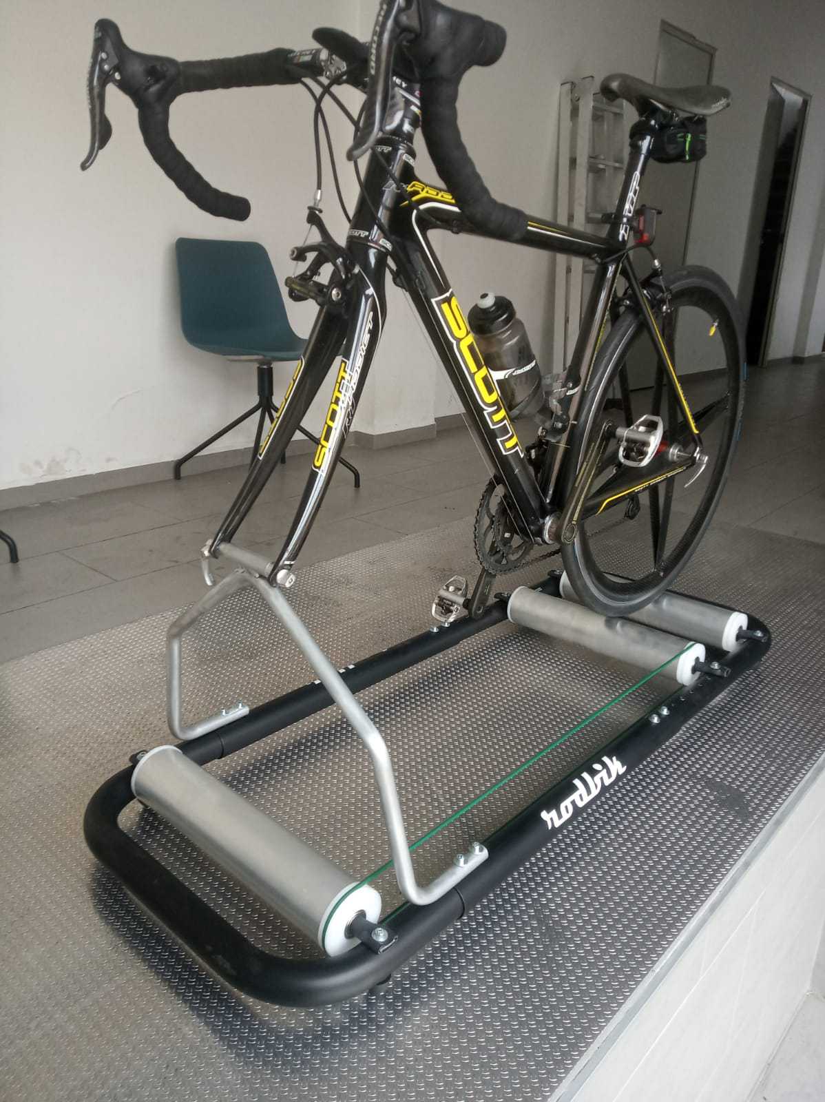 incluye soporte para la rueda delantera que le otorga total confianza para aquellas personas que todavia no se fian de un rodillo de equilibrio, estructura y rulos metalicos, patas de goma que le dan una estabilidad y seguridad por encima de su competencia, dos años de garantia y compatible con todo tipo de bicicletas